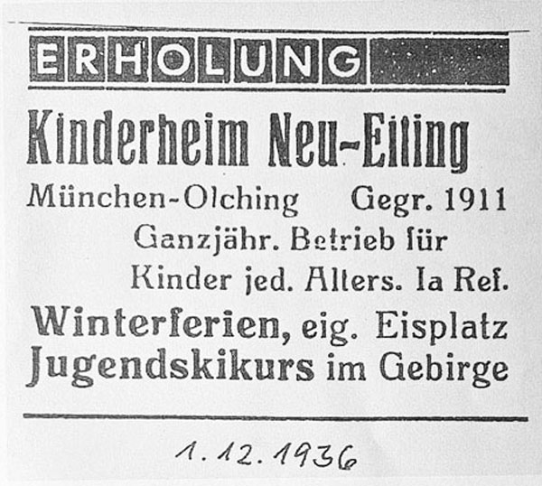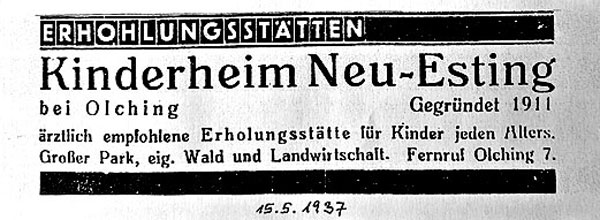 Inserate des Neu-Estinger Kinderheims von Gretl Bauer in der Bayerischen Israelitischen Gemeindezeitung